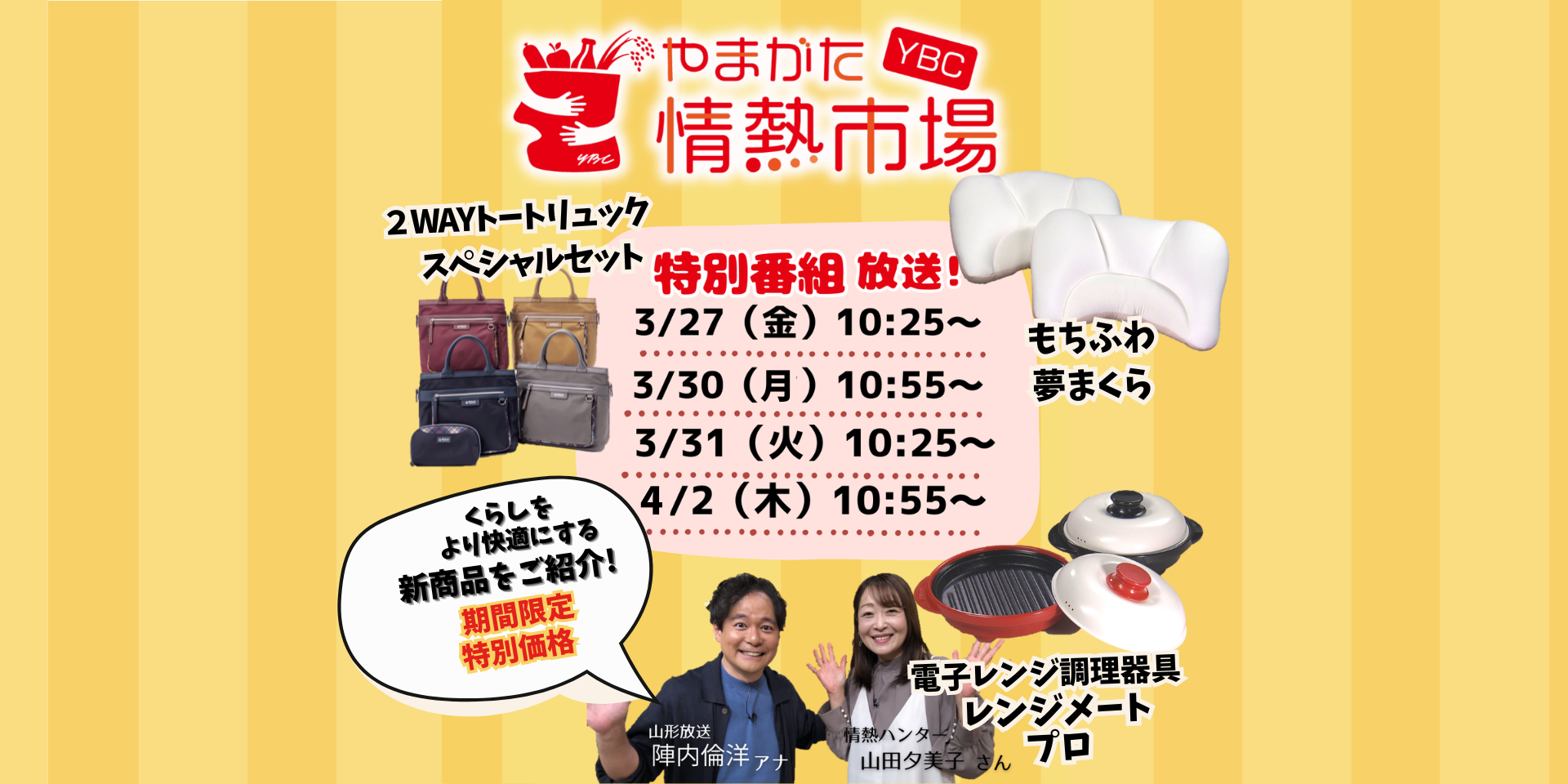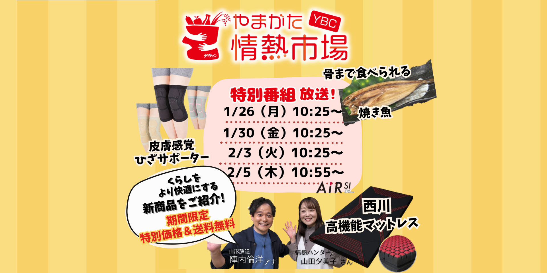 「YBCやまがた情熱市場」は、山形放送※1が、山形県のおいしいもの、こだわりの工芸品、そして、生活に役立つものを選りすぐり紹介するオンラインショップです。山形放送は、山形県内で最も親しまれ信頼されている放送局※2として、山形県民ととともに歩み続けています。私たちのもとには日々、ニュースや番組の取材を通じて、また、多くのスポンサー企業とのお付き合いの中で、多くの情報が集まってきます。