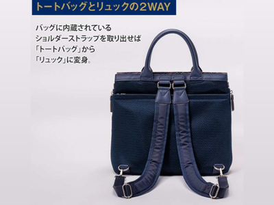 バッグに内蔵されているショルダーストラップを取り出せば「トートバッグ」から「リュック」に変身。