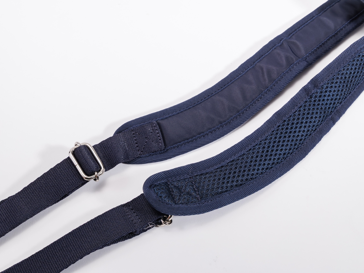 ・ソフトなメッシュ素材のショルダ―ストラップは、ハの字形状でフィットし、荷物が重くても肩に食い込みにくく、ズレにくい設計。