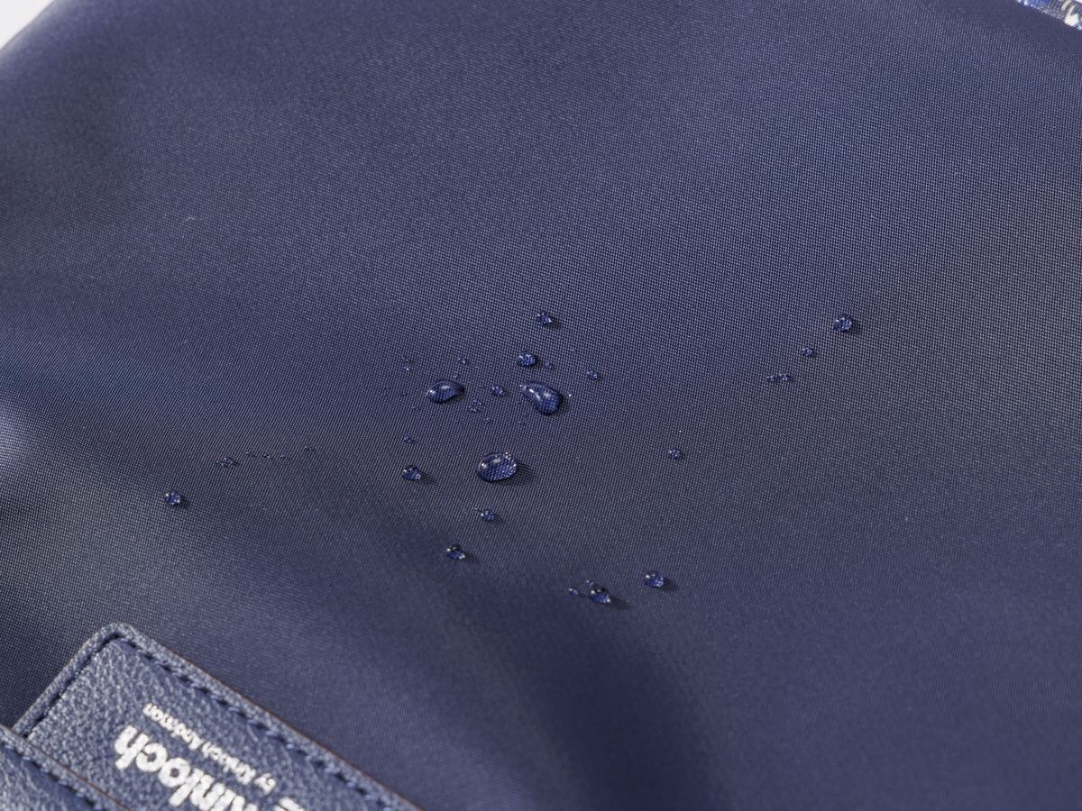 素材の表面には「はっ水加工」の高密度ナイロンを使用し、チャックの布地部分にも水がはじきやすい「はっ水加工」を施しています。(※完全防水ではありません。)