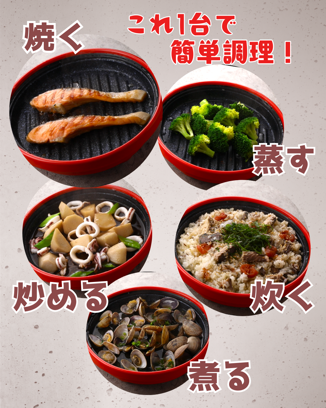 “焼く”“炒める”“蒸す”“炊く”“煮る” などなど