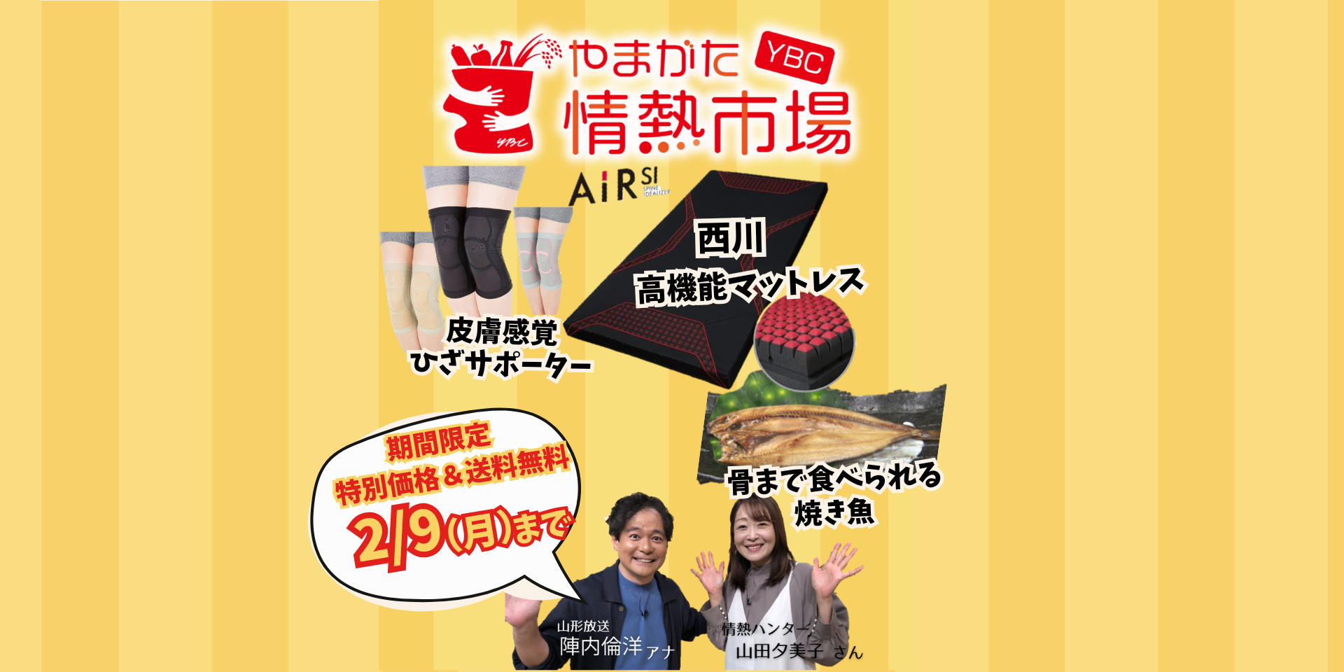 「YBCやまがた情熱市場」は、山形放送※1が、山形県のおいしいもの、こだわりの工芸品、そして、生活に役立つものを選りすぐり紹介するオンラインショップです。山形放送は、山形県内で最も親しまれ信頼されている放送局※2として、山形県民ととともに歩み続けています。私たちのもとには日々、ニュースや番組の取材を通じて、また、多くのスポンサー企業とのお付き合いの中で、多くの情報が集まってきます。