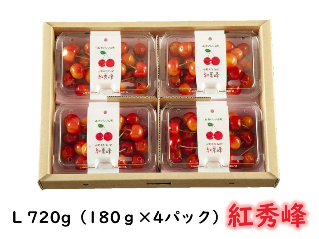 ◆こちらは【紅秀峰】L 720g(180g×4パック)です。 収穫した新鮮なさくらんぼの中から最も良いものをお届けいたします。