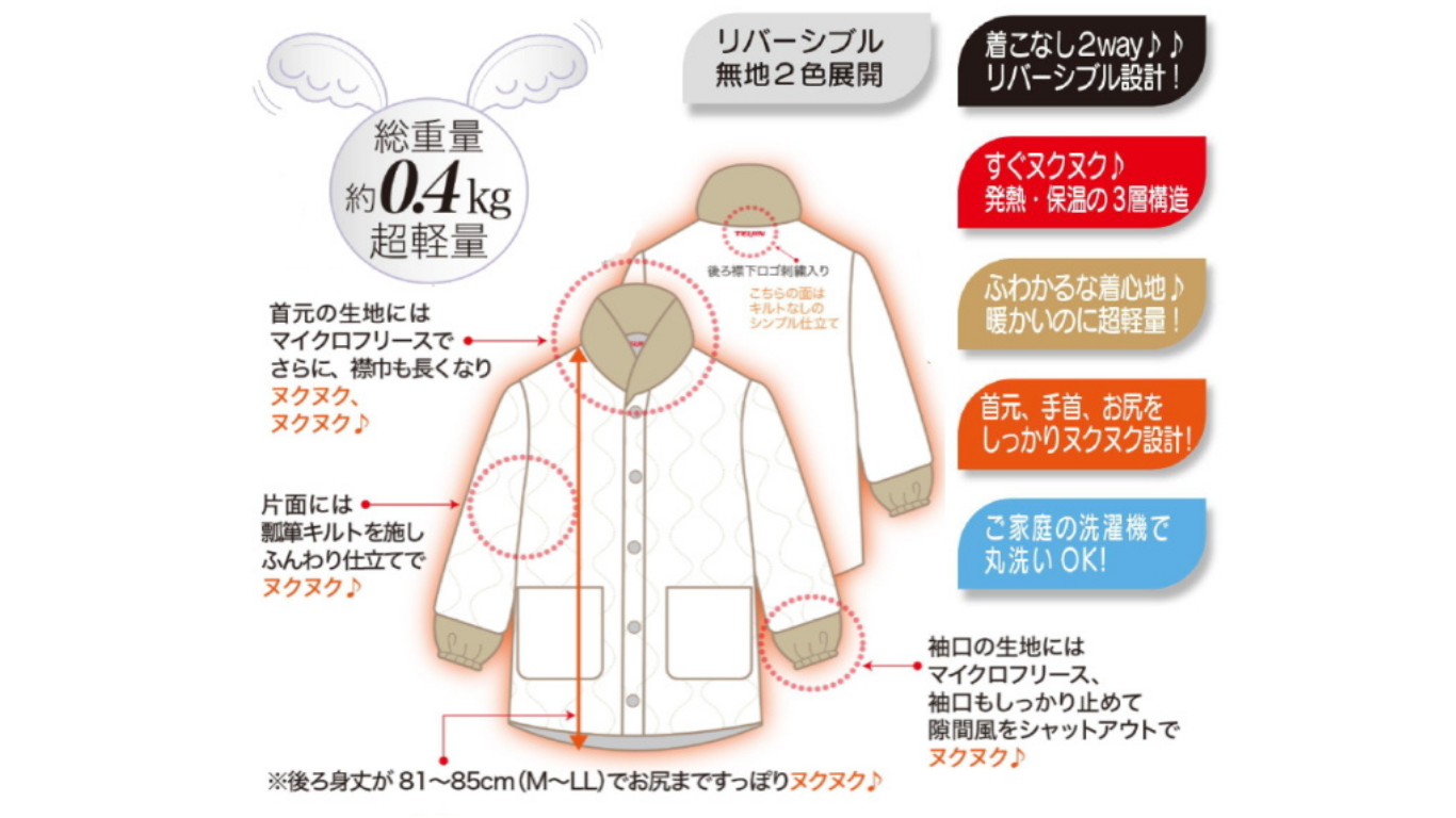 軽くて速暖!~寒い冬の味方!すぐぽか半てん~