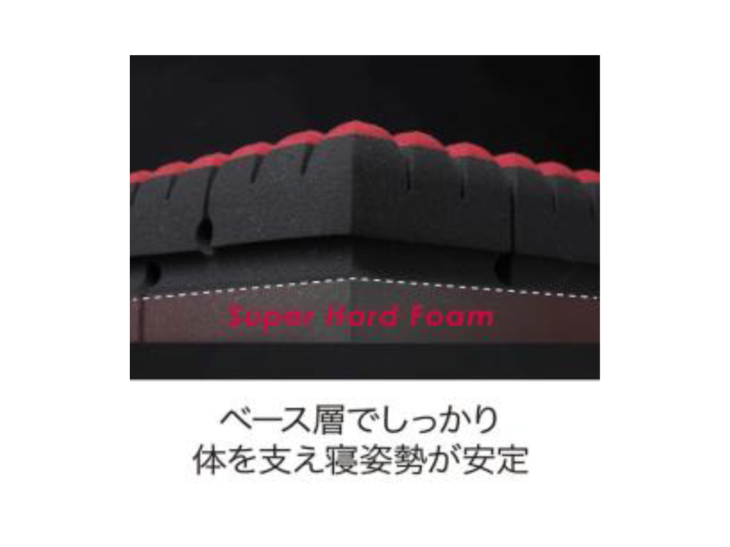 ベース層には表面より硬さのあるスーパーハードフォームを採用しているので、身体の沈み込みを調整して快適な寝姿勢をキープします。