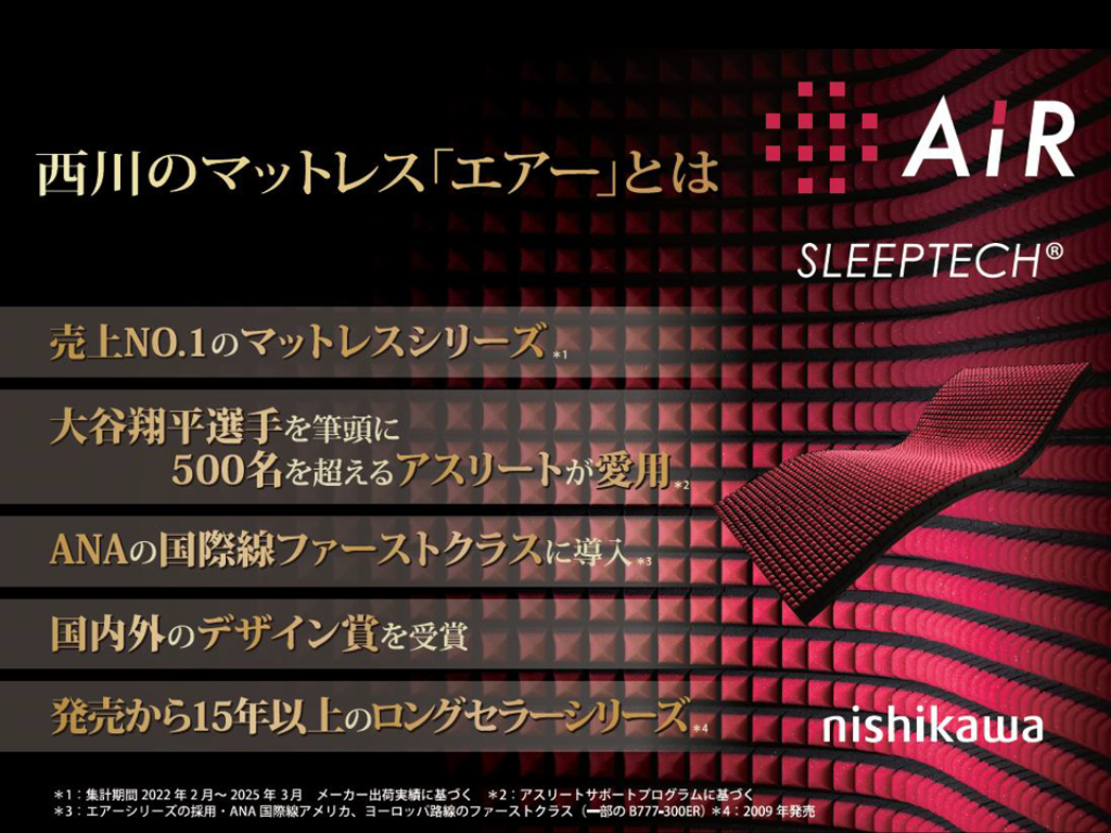 快適な眠りを追究してきた寝具メーカー「nishikawa」のエアーシリーズの中で売り上げ№1(2025年12月時点)のマットレスが情熱市場に登場です!