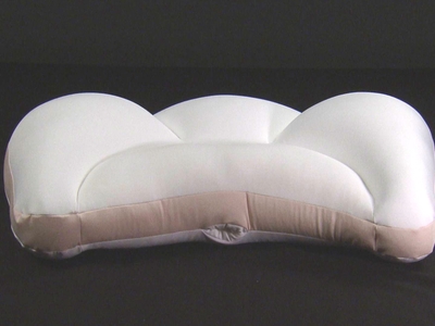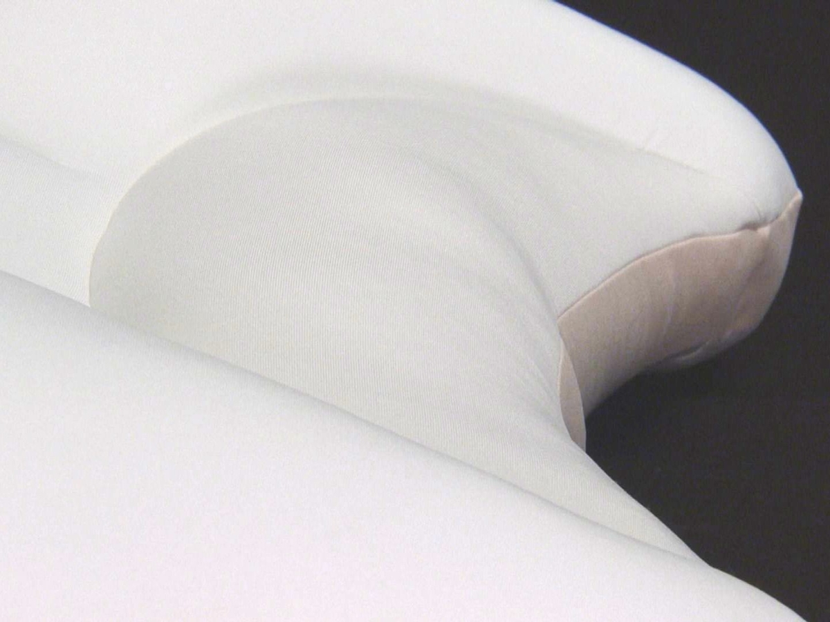 4部屋構造のおかげで、横向き寝になっても中材が流れていかず、しっかりと高さのボリュームをキープします。首回りに出来るすき間を無くし、常にフィットする様にアーチ状。たとえどんな寝相をしていても首をキャッチして逃がしません。
