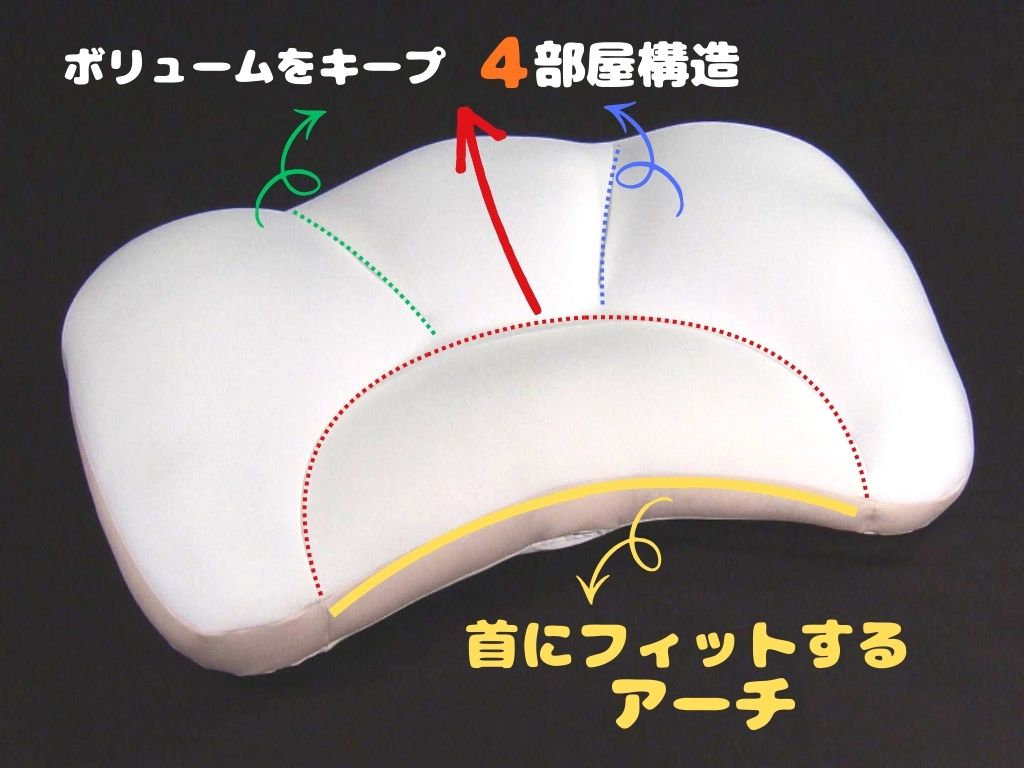 頭はふんわり包み込み、首はしっかり支えるため、こだわりの4部屋構造になっています。